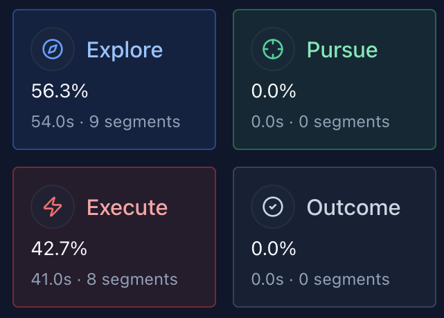 The system breaks the clip into exploration, execution, and outcome — so you can see how the player’s focus evolves over time.